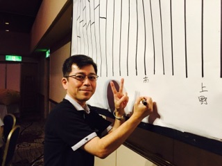 あみだくじをひく高田副会長